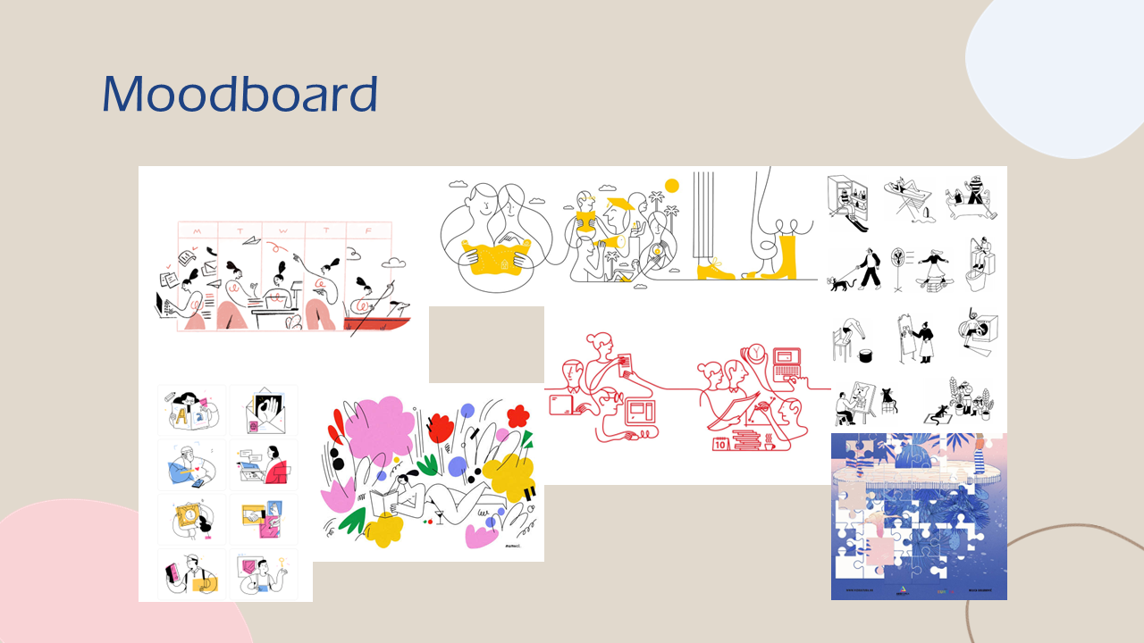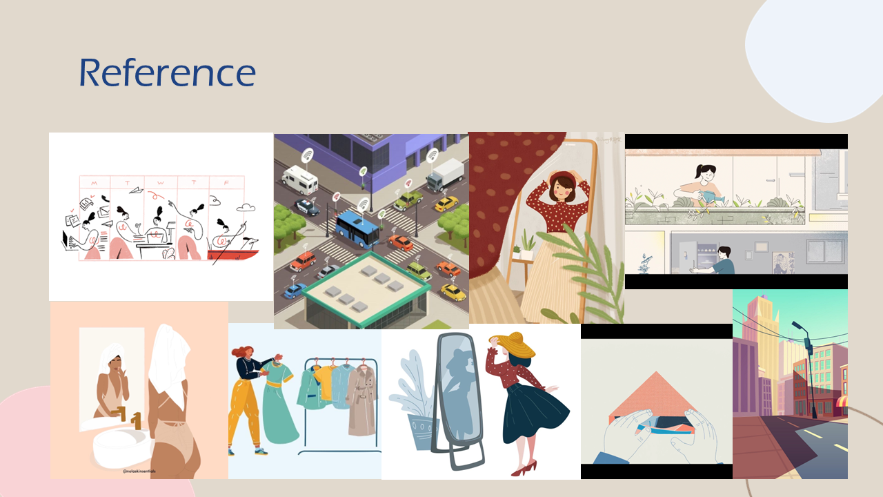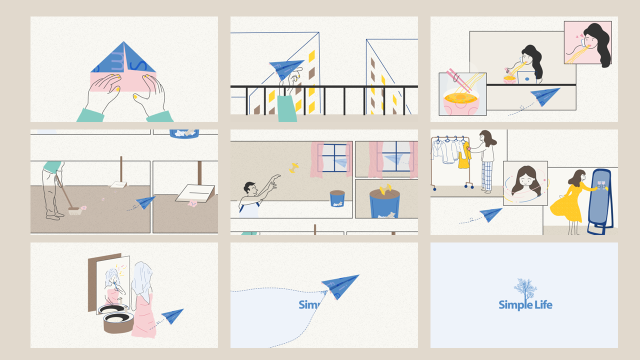 Each frames will show some daily life moments For example, enjoying working or other hobbies, the ordinary moments but add some interesting or humor elements.